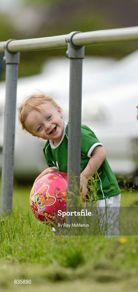 10 June 2012; Sixteen month old Callum Dunne, whose dad lined out at midfield for St Kevin's, entertains supporters on the sideline. Kildare Senior Football League, Division 2, Kilcock GAA Club v St Kevin's GAA Club, Kilcock GAA Club, Baltracey, Kilcock, Co. Kildare. Picture credit: Ray McManus / SPORTSFILE