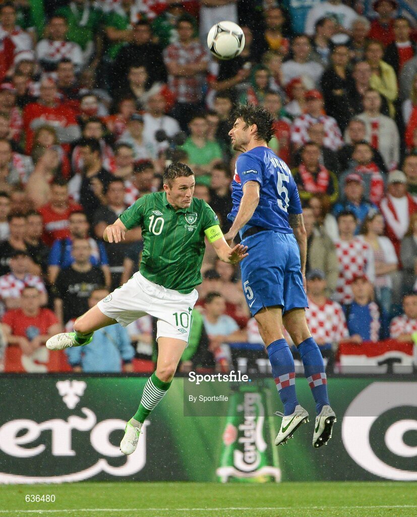 10 June 2012; Robbie Keane, Republic of Ireland, in action against Vedran Corluka, Croatia. EURO2012, Group C, Republic of Ireland v Croatia, Municipal Stadium Poznan, Poznan, Poland. Photo by Sportsfile