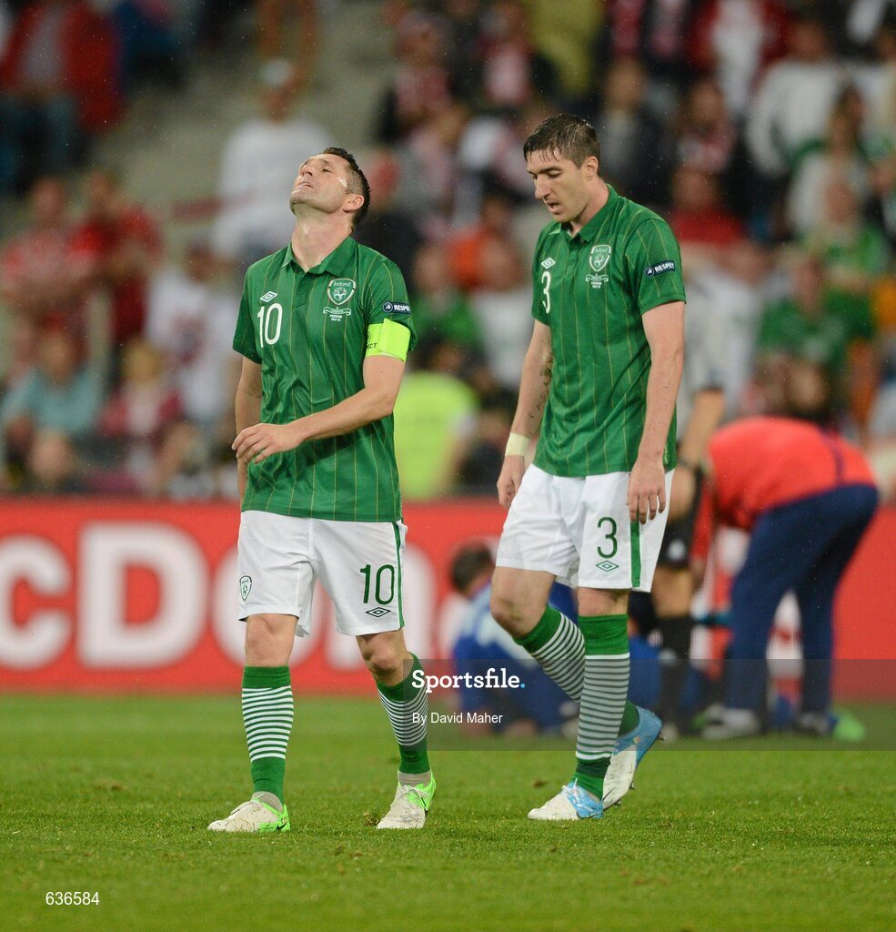 10 June 2012; Robbie Keane, left, and Stephen Ward, Republic of Ireland, after Croatia scored their second goal of the game. EURO2012, Group C, Republic of Ireland v Croatia, Municipal Stadium Poznan, Poznan, Poland. Picture credit: David Maher / SPORTSFILE