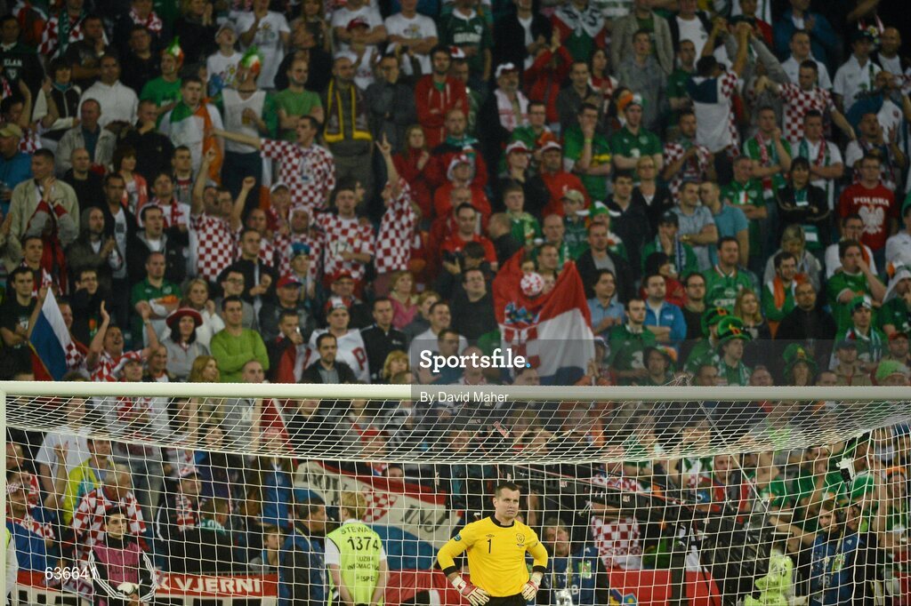 10 June 2012; Republic of Ireland goalkeeper Shay Given after Croatia's Mario Mandžukic scored their side's third goal after 48 minutes. EURO2012, Group C, Republic of Ireland v Croatia, Municipal Stadium Poznan, Poznan, Poland. Picture credit: David Maher / SPORTSFILE