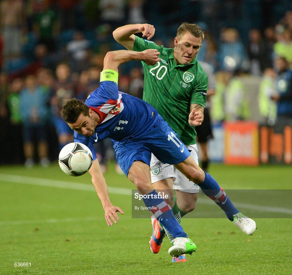 10 June 2012; Darijo Srna, Croatia, in action against Simon Cox, Republic of Ireland. EURO2012, Group C, Republic of Ireland v Croatia, Municipal Stadium Poznan, Poznan, Poland. Photo by Sportsfile
