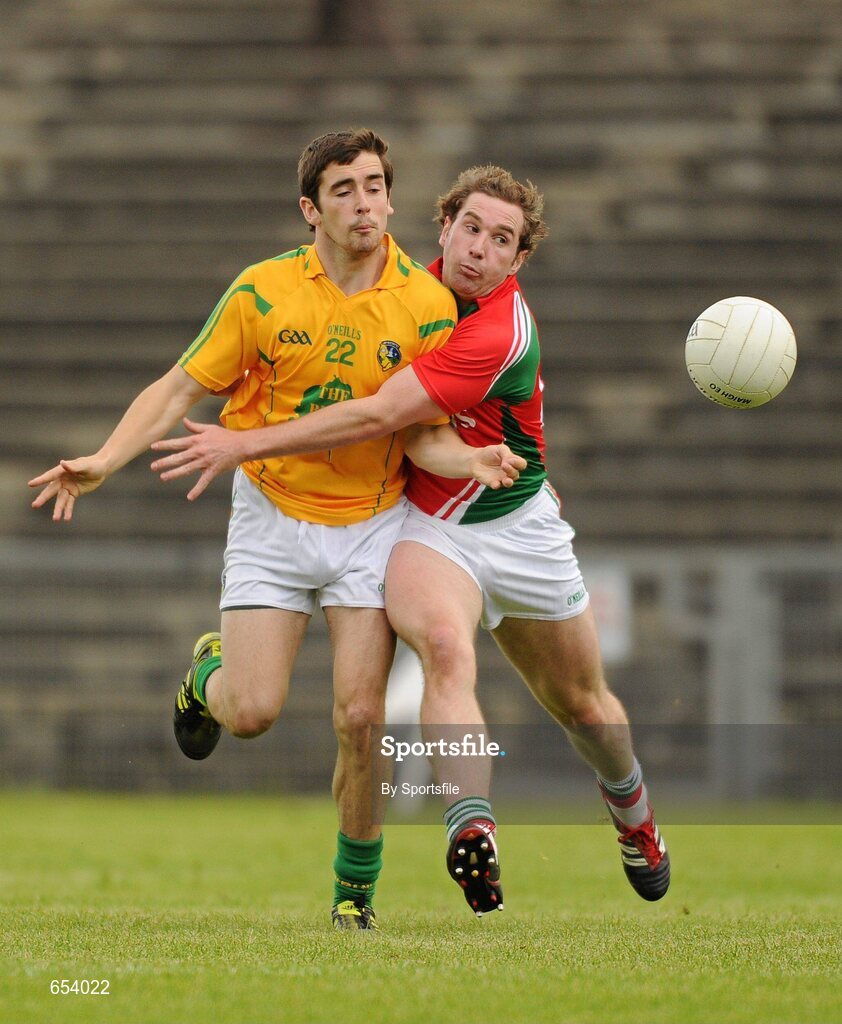 24 June 2012; Kevin Conlon, Leitrim, in action against Michael Conroy, Mayo. Connacht GAA Football Senior Championship Semi-Final, Mayo v Leitrim, McHale Park, Castlebar, Co. Mayo. Photo by Sportsfile