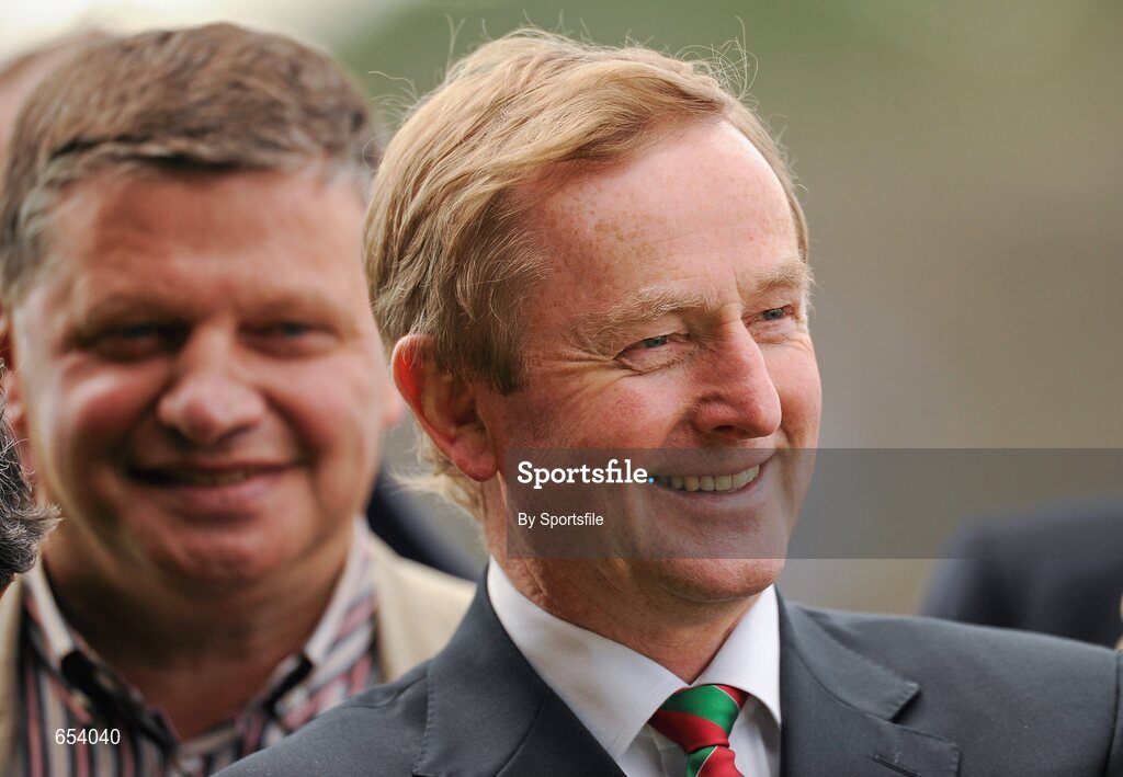 24 June 2012; An Taoiseach Enda Kenny T.D. alongside John O Mahoney T.D, at the official opening of the redeveloped McHale Park. Connacht GAA Football Senior Championship Semi-Final, Mayo v Leitrim, McHale Park, Castlebar, Co. Mayo. Photo by Sportsfile