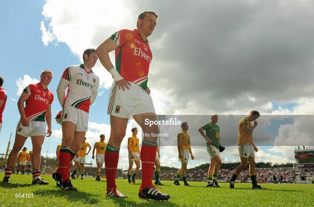 24 June 2012; Mayo captain Andy Moran leads his team in the pre-match parade. Connacht GAA Football Senior Championship Semi-Final, Mayo v Leitrim, McHale Park, Castlebar, Co. Mayo. Photo by Sportsfile