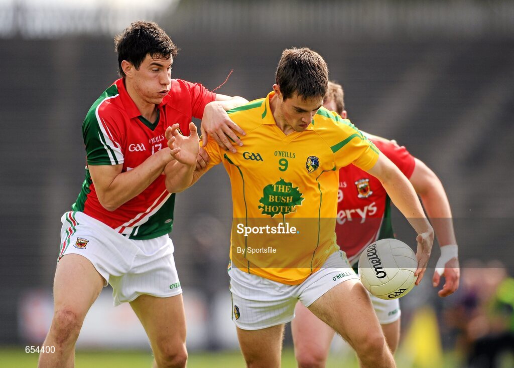 24 June 2012; Shane Moran, Leitrim, in action against Alan Freeman, Mayo. Connacht GAA Football Senior Championship Semi-Final, Mayo v Leitrim, McHale Park, Castlebar, Co. Mayo. Photo by Sportsfile