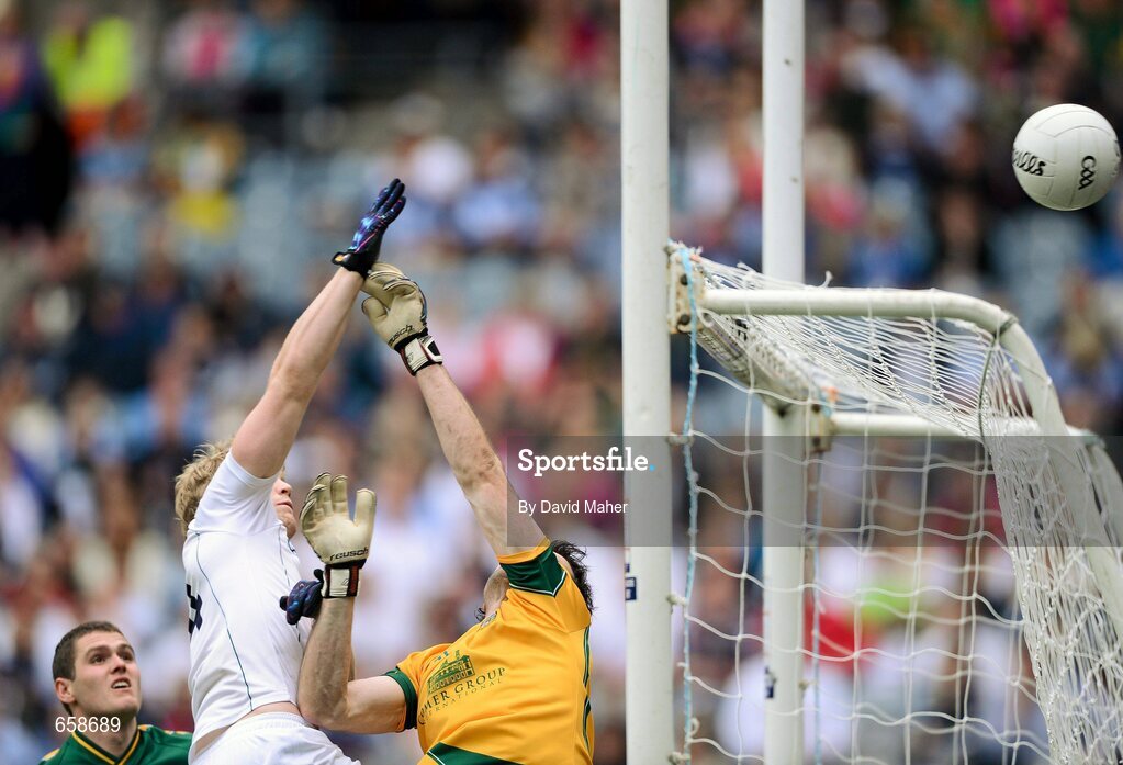 1 July 2012; Tomas O'Connor, Kildare, punches over a point against Meath goalkeeper David Gallagher. Leinster GAA Football Senior Championship Semi-Final, Meath v Kildare, Croke Park, Dublin. Picture credit: David Maher / SPORTSFILE
