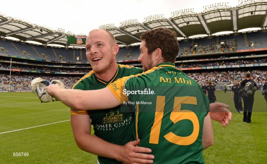 1 July 2012; Joe Sheridan, left, and Cian Ward celebrate the Meath victory. Leinster GAA Football Senior Championship Semi-Final, Meath v Kildare, Croke Park, Dublin. Picture credit: Ray McManus / SPORTSFILE