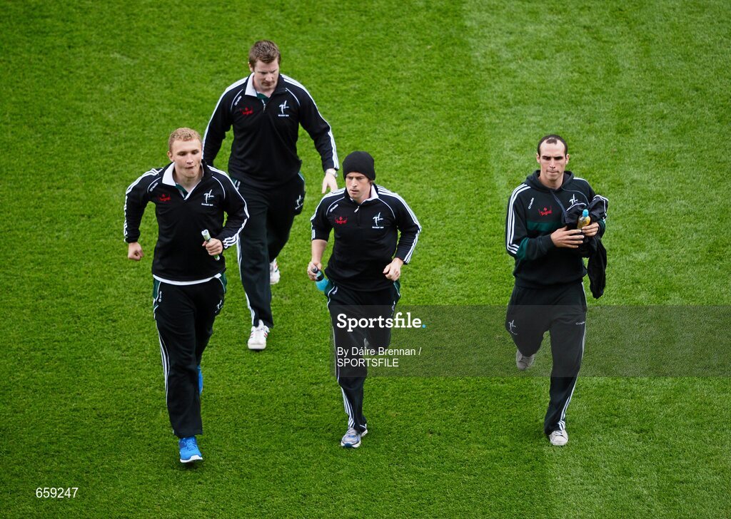 1 July 2012; Kildare panel members, including Seánie Johnston, black hat, make their way back to the dugout after half time. Leinster GAA Football Senior Championship Semi-Final, Meath v Kildare, Croke Park, Dublin. Picture credit: Daire Brennan / SPORTSFILE