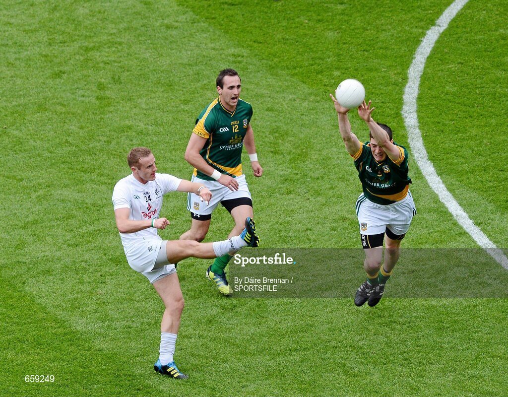 1 July 2012; Alan Smith, Kildare, gets his shot away despite the effort of Donncha Tobin, Meath. Leinster GAA Football Senior Championship Semi-Final, Meath v Kildare, Croke Park, Dublin. Picture credit: Daire Brennan / SPORTSFILE