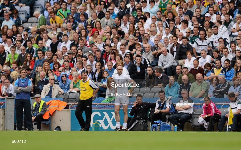 1 July 2012; Kildare manager Kieran McGeeney waits for a break in play to introduce Dermot Earley, right, in the second half. Leinster GAA Football Senior Championship Semi-Final, Meath v Kildare, Croke Park, Dublin. Picture credit: Ray McManus / SPORTSFILE