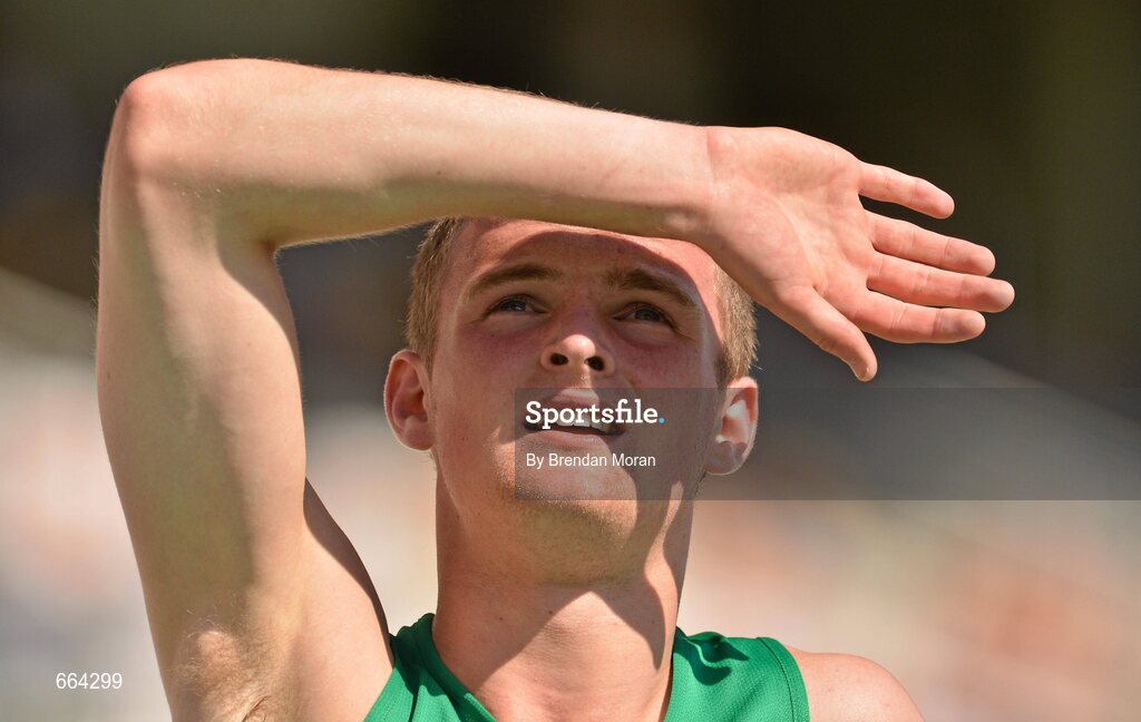 12 July 2012; Ireland's Marcus Lawler checks his time after his heat of the Men's 200m heats, where he finished in 5th place in a time of 21.58sec. IAAF World Junior Athletics Championships, Olympic Stadium, Barcelona, Spain. Picture credit: Brendan Moran / SPORTSFILE