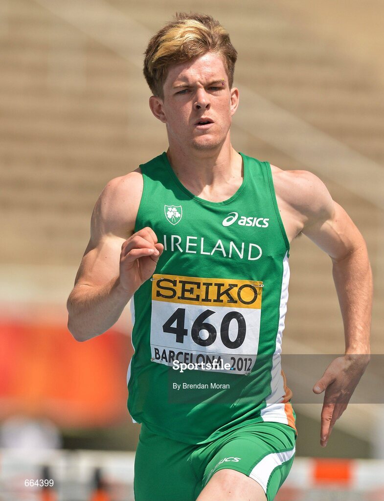 12 July 2012; Ireland's Ben Kiely in action during his semi-final of the Men's 400m Hurdles, where he finished 7th in a time of 53.06sec. IAAF World Junior Athletics Championships, Olympic Stadium, Barcelona, Spain. Picture credit: Brendan Moran / SPORTSFILE