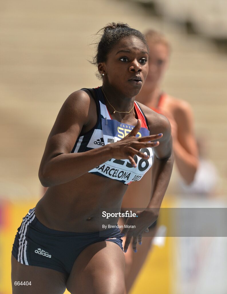 12 July 2012; Dina Asher-Smith, Great Britain, in action during the Women's 200m heats. IAAF World Junior Athletics Championships, Olympic Stadium, Barcelona, Spain. Picture credit: Brendan Moran / SPORTSFILE