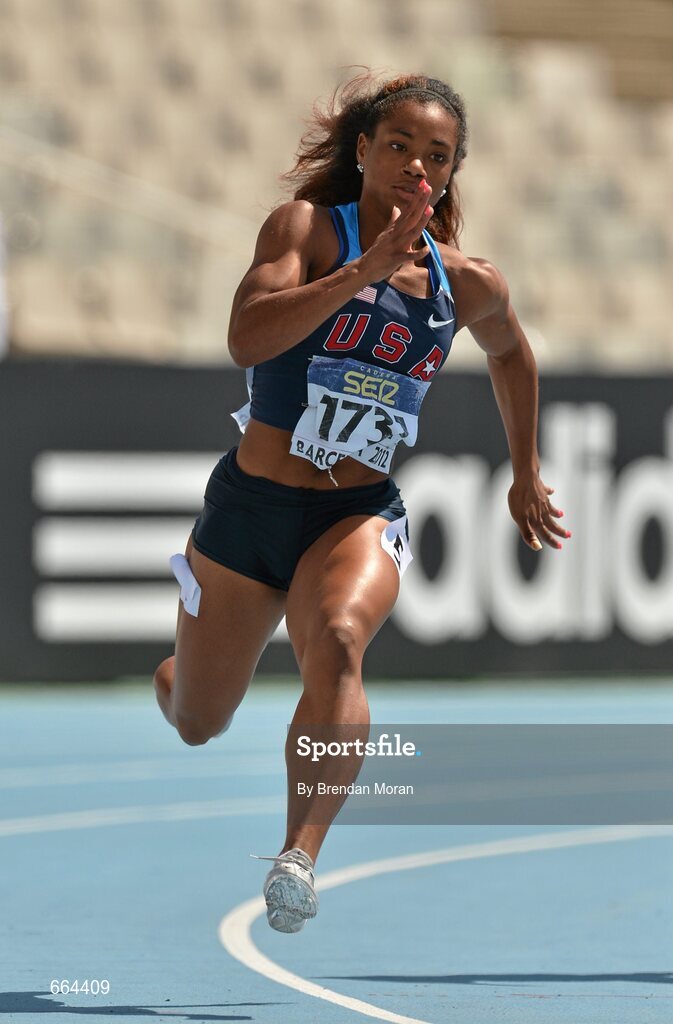 12 July 2012; Dezerea Bryant, USA, in action during the Women's 200m heats. IAAF World Junior Athletics Championships, Olympic Stadium, Barcelona, Spain. Picture credit: Brendan Moran / SPORTSFILE