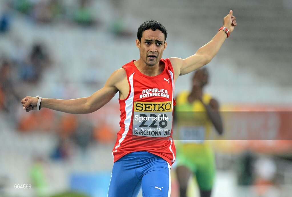 12 July 2012; Luguelin Santos, Dominican Republic, wins the Men's 400m Final. IAAF World Junior Athletics Championships, Olympic Stadium, Barcelona, Spain. Picture credit: Brendan Moran / SPORTSFILE