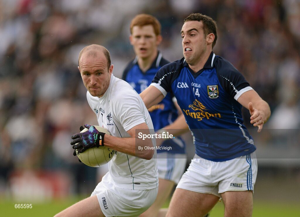 15 July 2012; Hugh McGrillen, Kildare, in action against Eugene Keating, Cavan. GAA Football All-Ireland Senior Championship Qualifier, Round 2, Cavan v Kildare, Kingspan Breffni Park, Cavan. Picture credit: Oliver McVeigh / SPORTSFILE