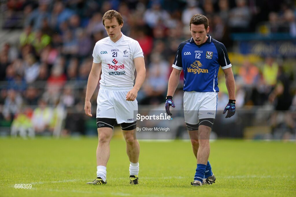 15 July 2012; Seanie Johnston, Kildare, left, is marked by, his close friend, Ronan Flanagan, Cavan, after being introduced as a second half substitute. GAA Football All-Ireland Senior Championship Qualifier, Round 2, Cavan v Kildare, Kingspan Breffni Park, Cavan. Picture credit: Oliver McVeigh / SPORTSFILE