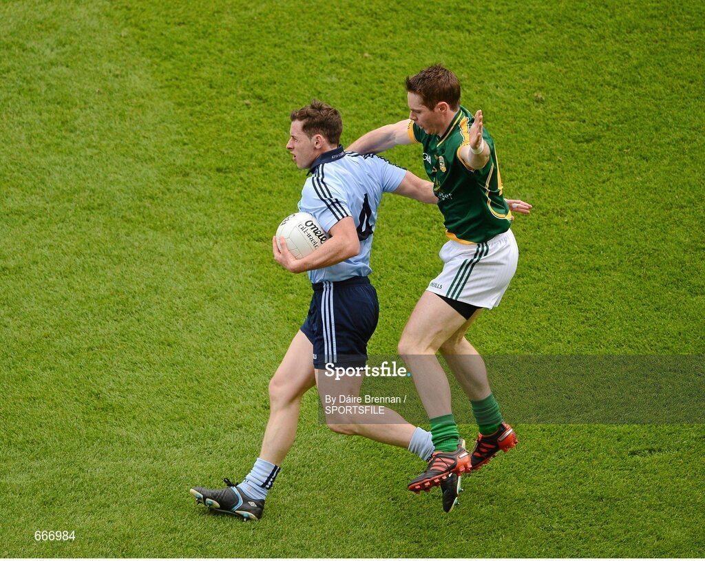 22 July 2012; Philip McMahon, Dublin, in action against Stephen Bray, Meath. Leinster GAA Football Senior Championship Final, Dublin v Meath, Croke Park, Dublin. Picture credit: Dáire Brennan / SPORTSFILE