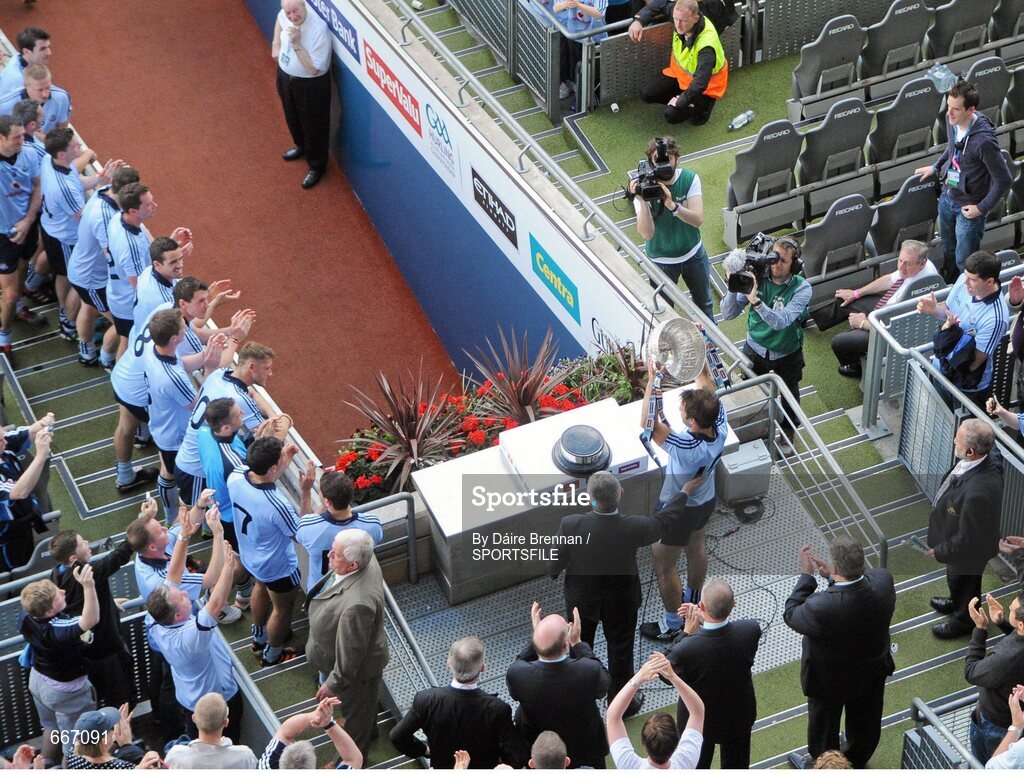 22 July 2012; Dublin captain Bryan Cullen lifts the Delaney cup. Leinster GAA Football Senior Championship Final, Dublin v Meath, Croke Park, Dublin. Picture credit: Dáire Brennan / SPORTSFILE
