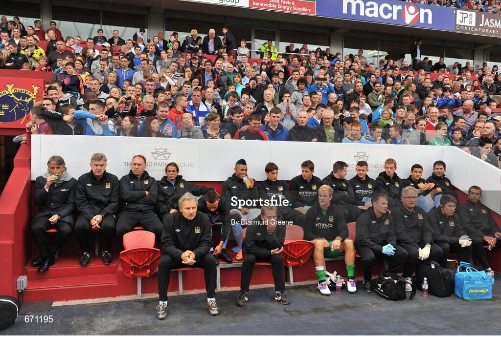 5 August 2012; A general view of the Manchester City bench before the game. Soccer Friendly, Limerick FC v Manchester City, Thomond Park, Limerick. Picture credit: Diarmuid Greene / SPORTSFILE