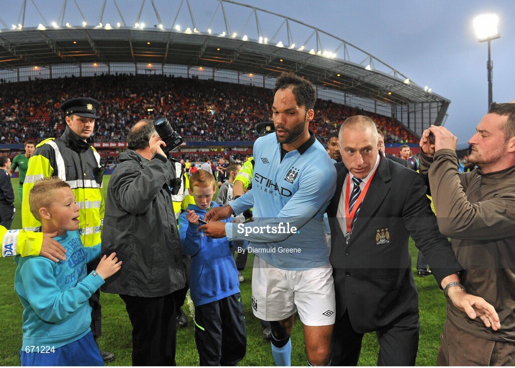 5 August 2012; Joleon Lescott, Manchester City, signs autographs for supporters after the game. Soccer Friendly, Limerick FC v Manchester City, Thomond Park, Limerick. Picture credit: Diarmuid Greene / SPORTSFILE