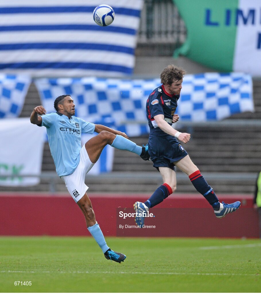 5 August 2012; Gael Clichy, Manchester City, in action against Garry Sheahan, Limerick FC. Soccer Friendly, Limerick FC v Manchester City, Thomond Park, Limerick. Picture credit: Diarmuid Greene / SPORTSFILE