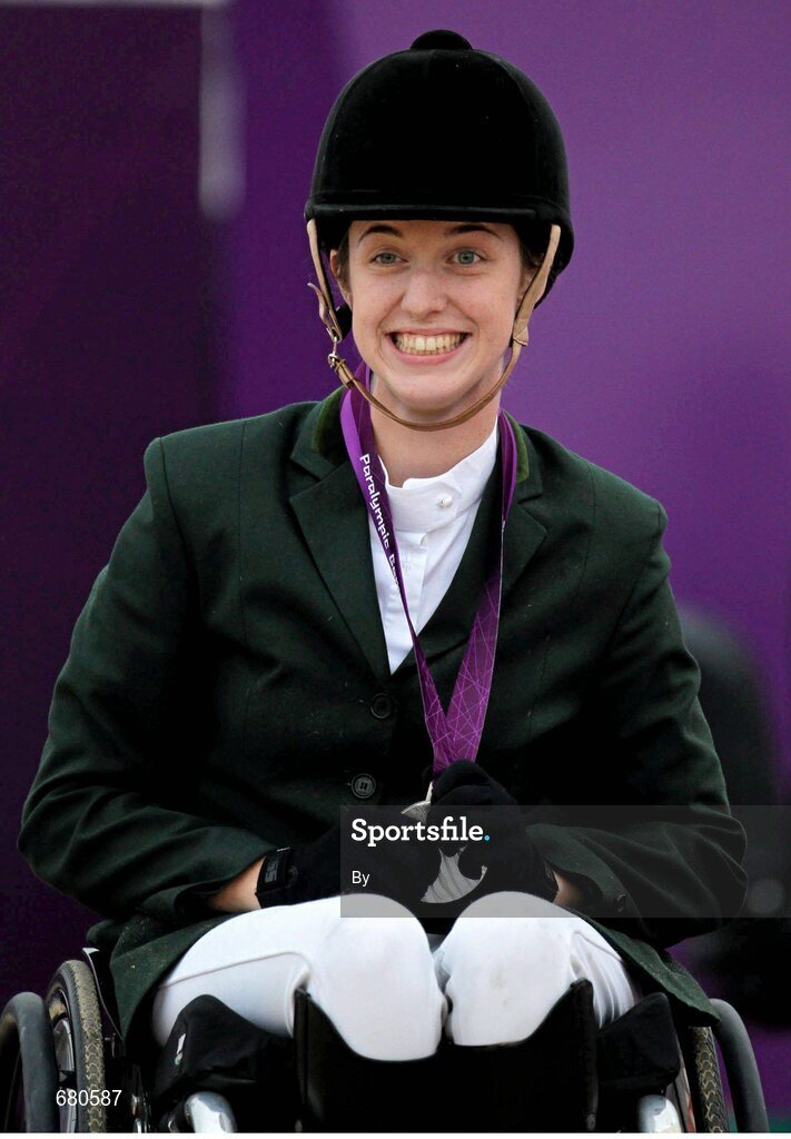 2 September 2012; Ireland's Helen Kearney, from Dunlaven, Co. Wicklow, celebrates after winning silver for individual championship test - grade Ia. London 2012 Paralympic Games, Equestrian, Olympic Park, Stratford, London, England. Picture credit: SPORTSFILE