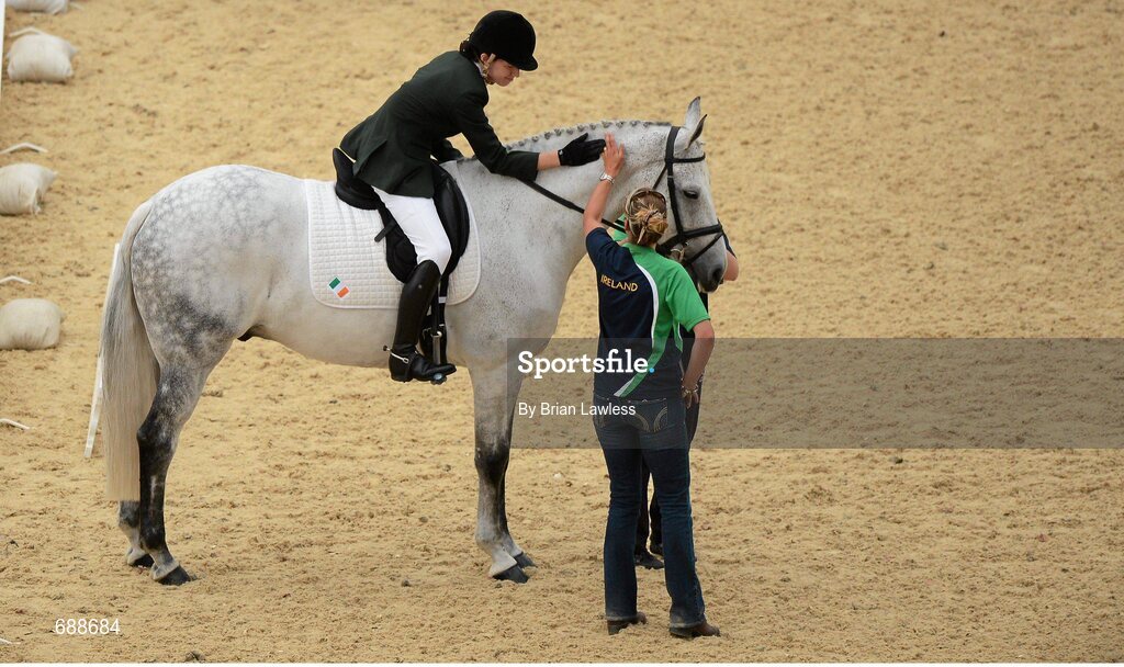 4 September 2012; Ireland's Helen Kearney, from Dunlaven, Co. Wicklow, on Mister Cool, after competing in the dressage individual freestyle test - Grade Ia. London 2012 Paralympic Games, Equestrian, Greenwich Park, Greenwich, London, England. Picture credit: Brian Lawless / SPORTSFILE