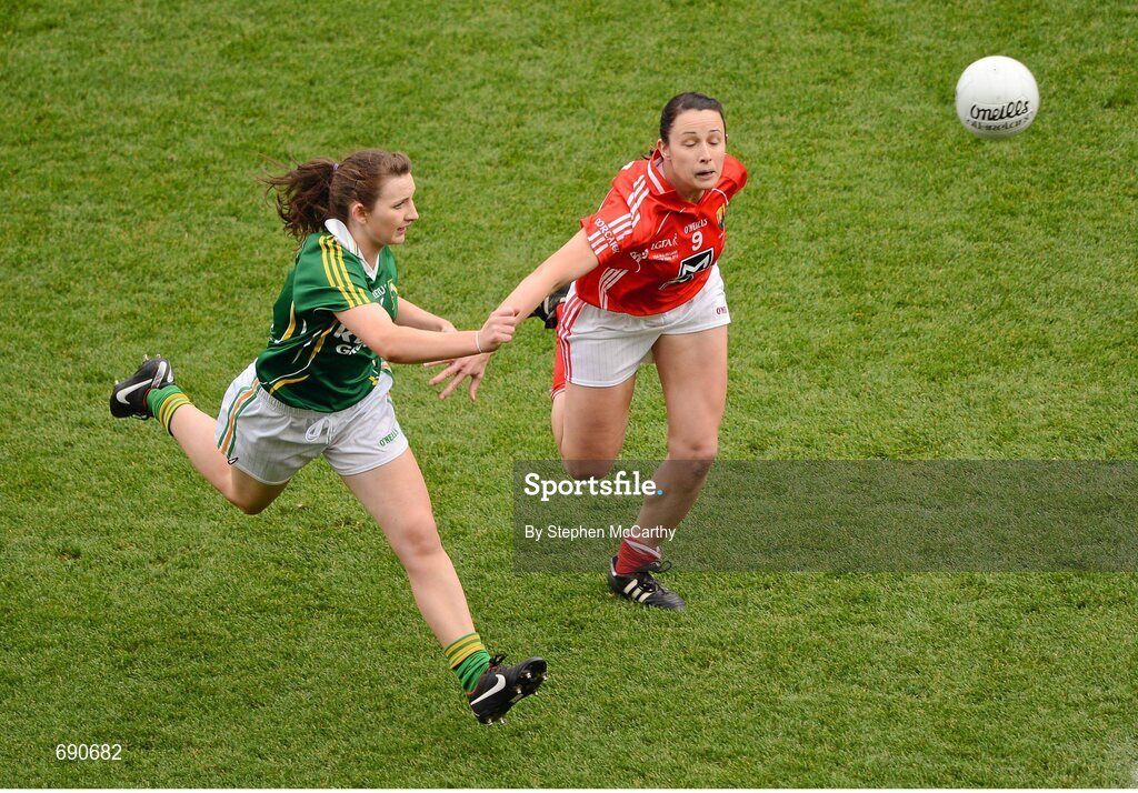 7 October 2012; Cait Lynch, Kerry, in action against Norita Kelly, Cork. TG4 All-Ireland Ladies Football Senior Championship Final, Cork v Kerry, Croke Park, Dublin. Picture credit: Stephen McCarthy / SPORTSFILE