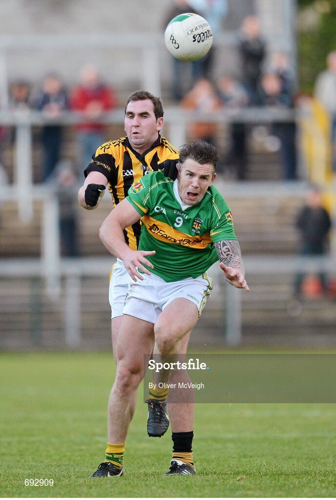 14 October 2012; David McKenna, Crossmaglen Rangers, in action against John Paul Donnelly, Pearse Og. Armagh County Senior Football Championship Final, Crossmaglen Rangers v Pearse Og, Morgan Athletic Grounds, Armagh. Picture credit: Oliver McVeigh / SPORTSFILE