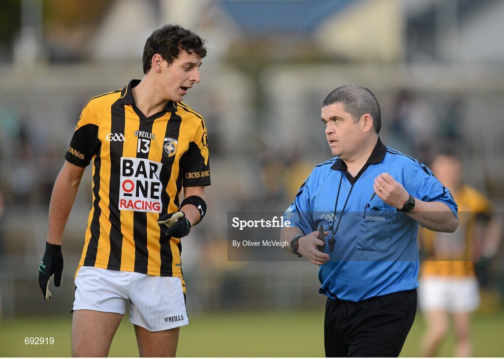 14 October 2012; Jamie Clarke, Crossmaglen Rangers, pleading with Referee Stephen Murray. Armagh County Senior Football Championship Final, Crossmaglen Rangers v Pearse Og, Morgan Athletic Grounds, Armagh. Picture credit: Oliver McVeigh / SPORTSFILE