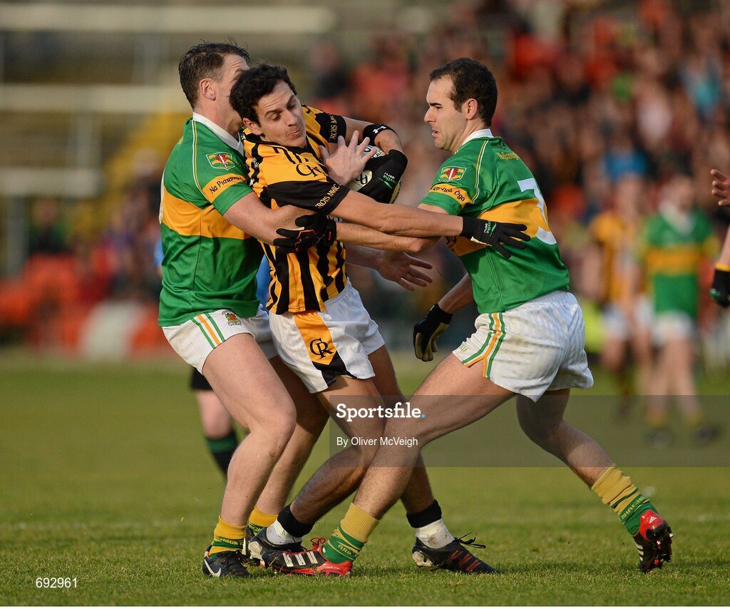 14 October 2012; Jamie Clarke, Crossmaglen Rangers, in action against John Paul Donnelly and Gerard Barton, Pearse Og. Armagh County Senior Football Championship Final, Crossmaglen Rangers v Pearse Og, Morgan Athletic Grounds, Armagh. Picture credit: Oliver McVeigh / SPORTSFILE