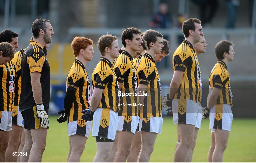 14 October 2012; The Crossmaglen Rangers team stand for a minute's silence. Armagh County Senior Football Championship Final, Crossmaglen Rangers v Pearse Og, Morgan Athletic Grounds, Armagh. Picture credit: Oliver McVeigh / SPORTSFILE