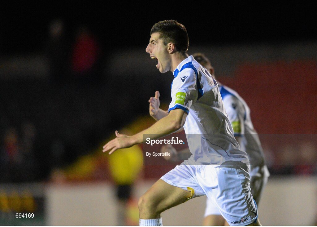 20 October 2012; Craig Burns, Waterford United, celebrates after scoring his side's second goal. Airtricity League First Division Promotion Play-Off, 1st Leg, Longford Town v Waterford United, Flancare Park, Co. Longford. Photo by Sportsfile