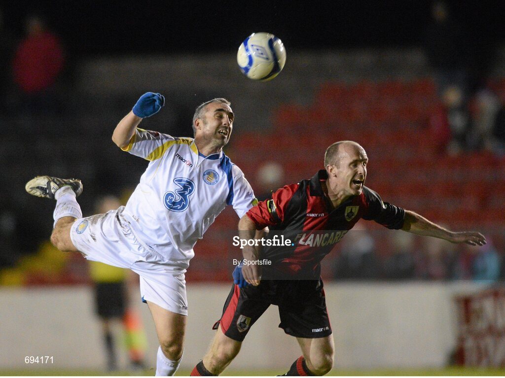 20 October 2012; Gary Dempsey, Waterford United, in action against Alan Kirby, Longford Town. Airtricity League First Division Promotion Play-Off, 1st Leg, Longford Town v Waterford United, Flancare Park, Co. Longford. Photo by Sportsfile