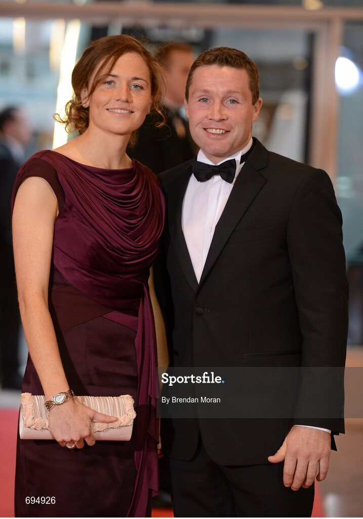 26 October 2012; Galway hurler Damien Hayes and Claire Grogan, from Tipperary, arrive ahead of the 2012 GAA GPA All-Star awards, sponsored by Opel. National Convention Centre, Dublin. Picture credit: Brendan Moran / SPORTSFILE