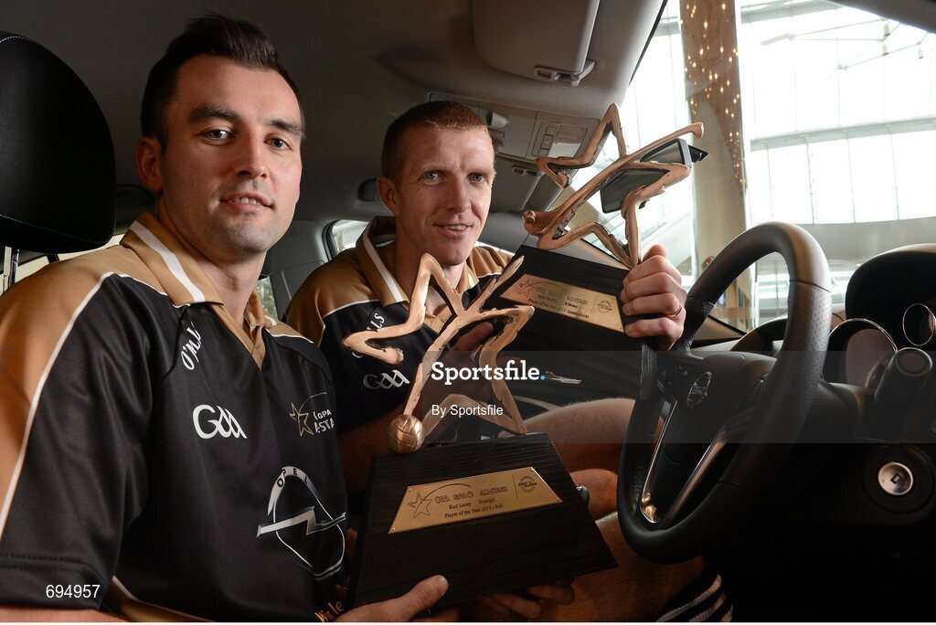 26 October 2012; Donegal footballer Karl Lacey, left, and Kilkenny hurler Henry Shefflin with their Opel GAA GPA Player of the Year awards. National Convention Centre, Dublin. Photo by Sportsfile