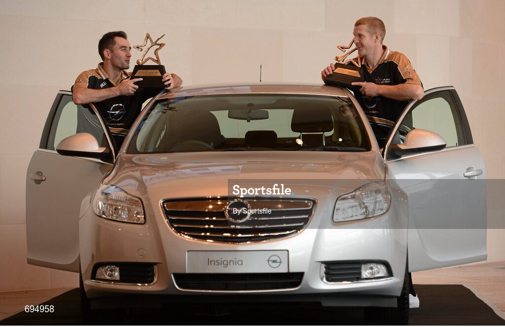 26 October 2012; Donegal footballer Karl Lacey, left, and Kilkenny hurler Henry Shefflin with their Opel GAA GPA Player of the Year awards. National Convention Centre, Dublin. Photo by Sportsfile