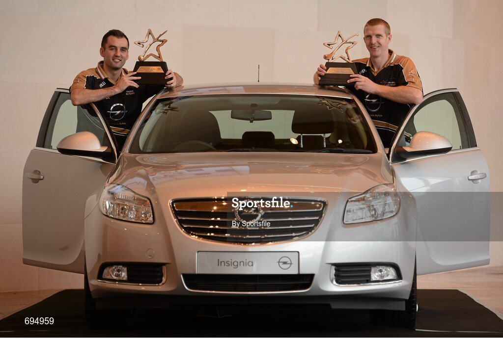26 October 2012; Donegal footballer Karl Lacey, left, and Kilkenny hurler Henry Shefflin with their Opel GAA GPA Player of the Year awards. National Convention Centre, Dublin. Photo by Sportsfile