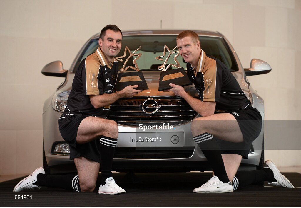 26 October 2012; Donegal footballer Karl Lacey, left, and Kilkenny hurler Henry Shefflin with their Opel GAA GPA Player of the Year awards. National Convention Centre, Dublin. Photo by Sportsfile