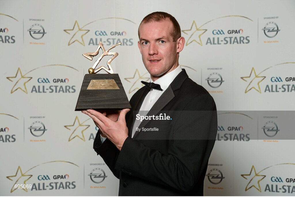 26 October 2012; Neil Gallagher, Donegal, with his 2012 GAA GPA All-Star Football award, at the GAA GPA All-Star Awards 2012, Sponsored by Opel, National Convention Centre, Dublin. Photo by Sportsfile