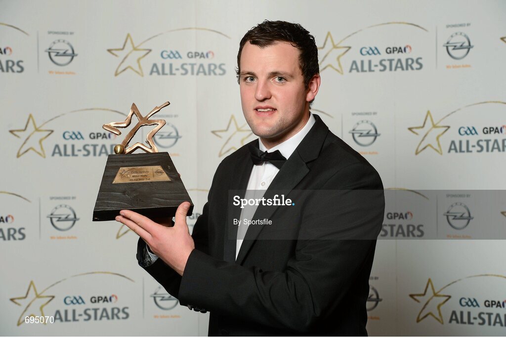 26 October 2012; Michael Murphy, Donegal, with his 2012 GAA GPA All-Star Football award, at the GAA GPA All-Star Awards 2012, Sponsored by Opel, National Convention Centre, Dublin. Photo by Sportsfile
