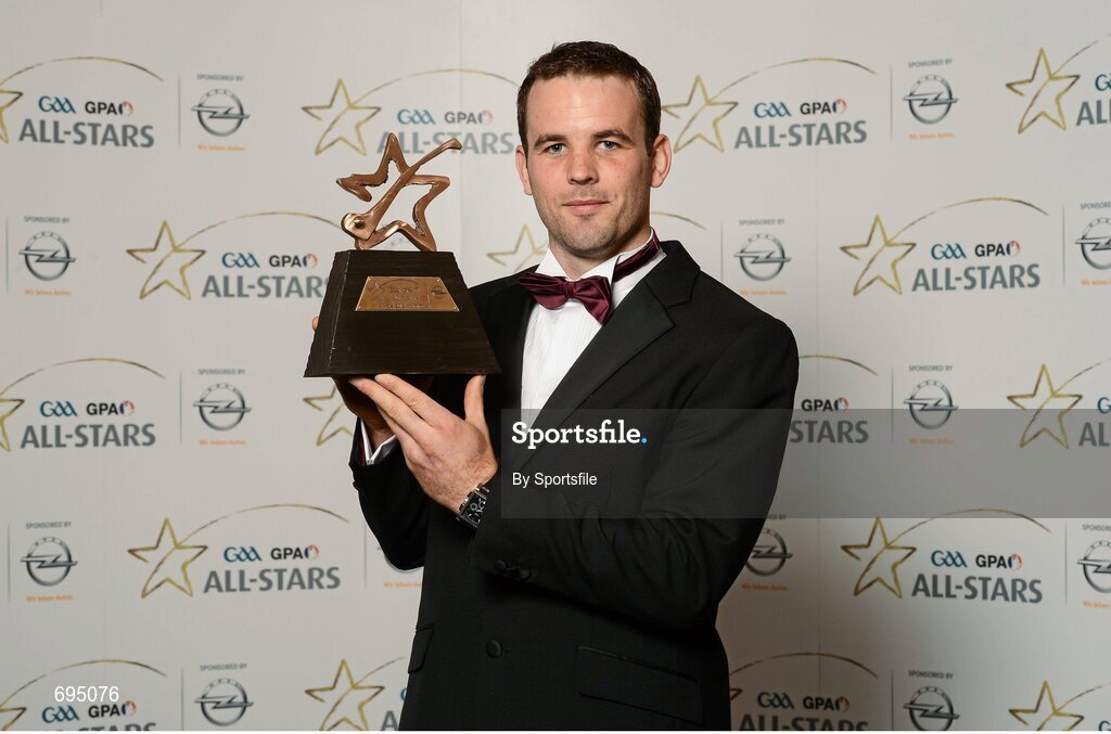 26 October 2012; David Collins, Galway, with his 2012 GAA GPA All-Star Hurling award, at the GAA GPA All-Star Awards 2012, Sponsored by Opel, National Convention Centre, Dublin. Photo by Sportsfile