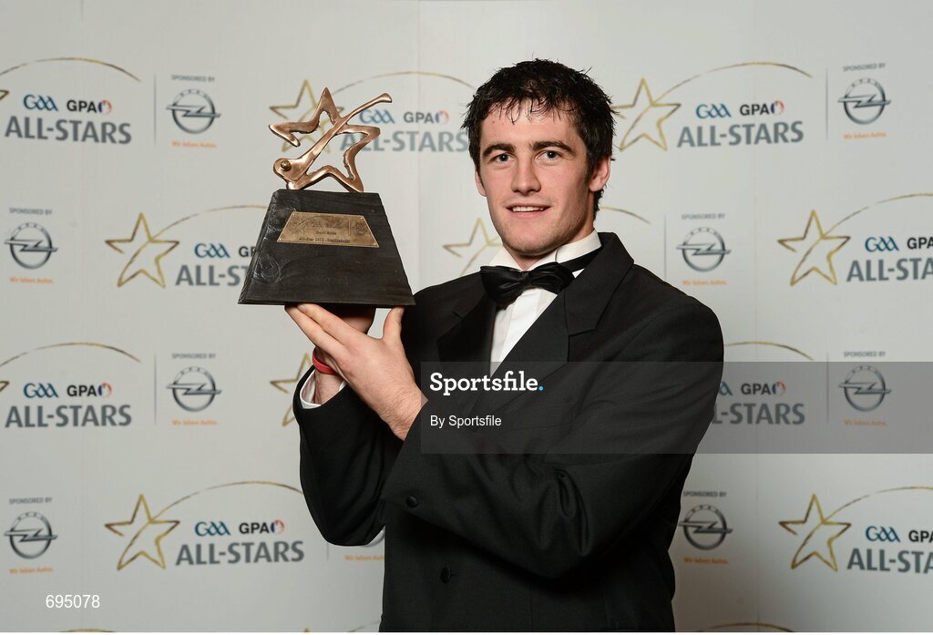 26 October 2012; David Burke, Galway, with his 2012 GAA GPA All-Star Hurling award, at the GAA GPA All-Star Awards 2012, Sponsored by Opel, National Convention Centre, Dublin. Photo by Sportsfile