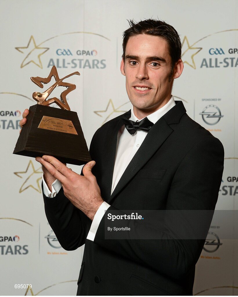 26 October 2012; Brendan Bugler, Clare, with his 2012 GAA GPA All-Star Hurling award, at the GAA GPA All-Star Awards 2012, Sponsored by Opel, National Convention Centre, Dublin. Photo by Sportsfile