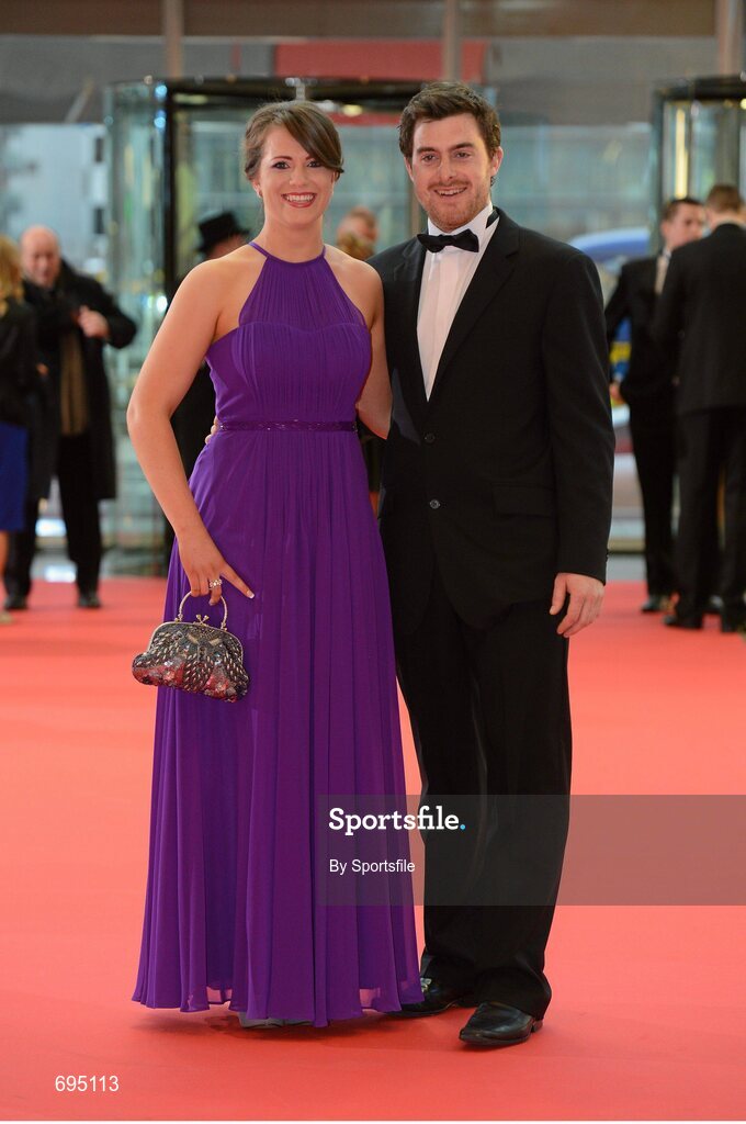 26 October 2012; Monaghan hurler PJ Boyle with Karen Hall at the 2012 GAA GPA All-Star awards, sponsored by Opel. National Convention Centre, Dublin. Photo by Sportsfile