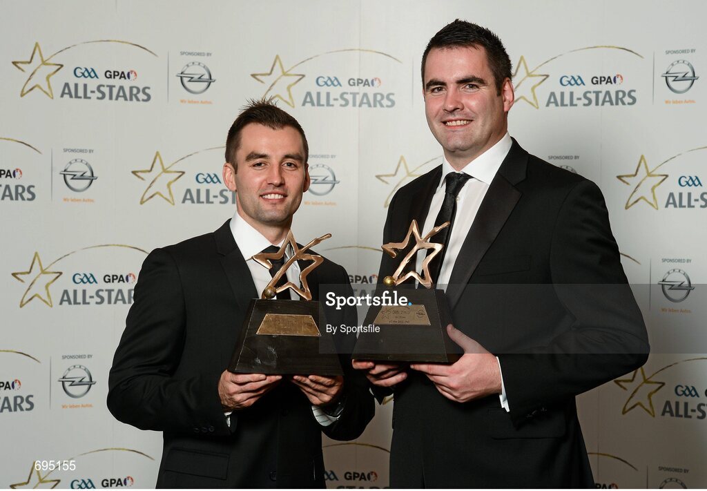 26 October 2012; Donegal's Karl Lacey, left, and Paul Durcan with their 2012 GAA GPA All-Star Football awards, at the GAA GPA All-Star Awards 2012, Sponsored by Opel, National Convention Centre, Dublin. Photo by Sportsfile