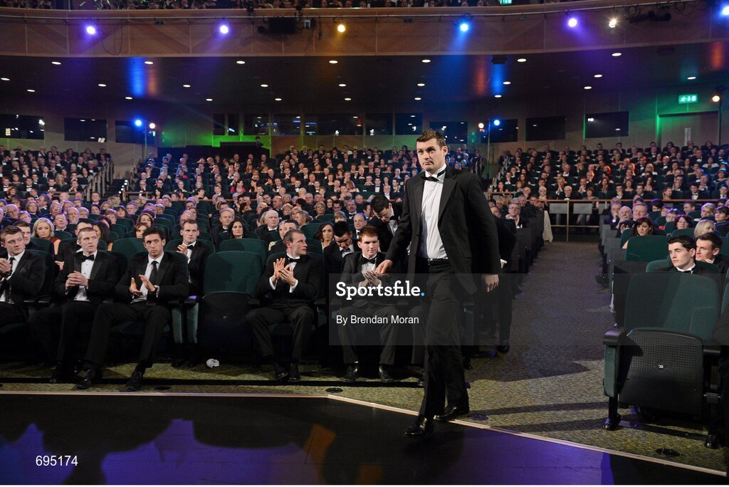 26 October 2012; Galway's Iarla Tannian walks up to receive his 2012 GAA GPA All-Star award, sponsored by Opel. GAA GPA All-Star Awards 2012 Sponsored by Opel, National Convention Centre, Dublin. Picture credit: Brendan Moran / SPORTSFILE