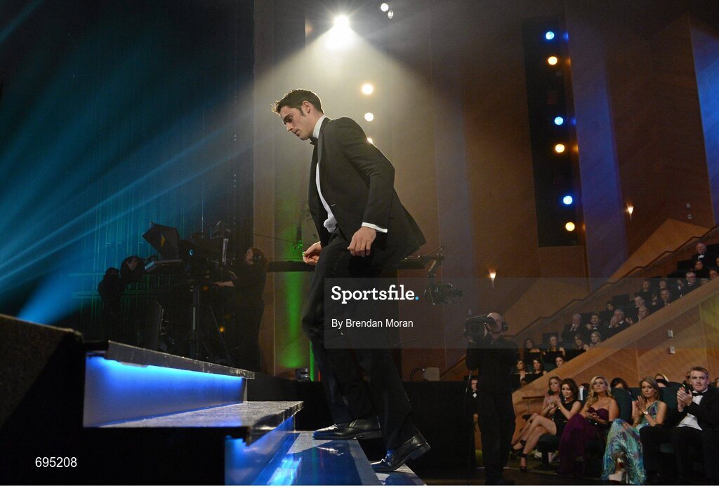 26 October 2012; Clare's Brendan Bugler walks up to receive his 2012 GAA GPA All-Star award, sponsored by Opel. GAA GPA All-Star Awards 2012 Sponsored by Opel, National Convention Centre, Dublin. Picture credit: Brendan Moran / SPORTSFILE