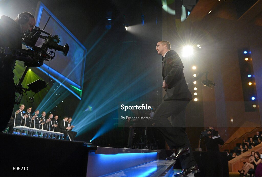26 October 2012; Kilkenny's Henry Shefflin walks up to receive his 2012 GAA GPA All-Star award, sponsored by Opel, his 11th Allstar award in total. GAA GPA All-Star Awards 2012 Sponsored by Opel, National Convention Centre, Dublin. Picture credit: Brendan Moran / SPORTSFILE